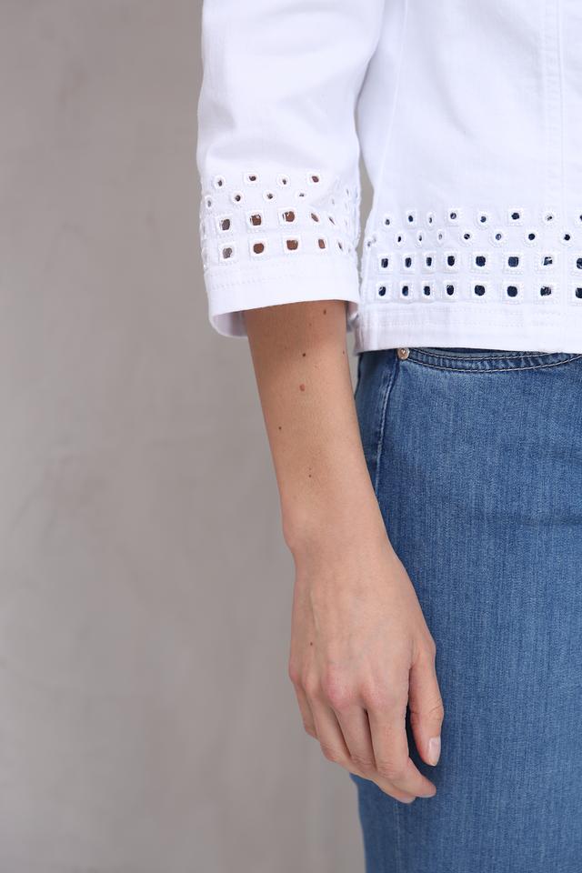 Белый жакет от Toni collection – стильная и лёгкая модель с вышивкой. Жакет имеет короткий рукав и застёжку на пуговицы, что делает его универсальным дополнением к любому образу. Состав: хлопок 92%, полиэстер 6%, эластан 2%