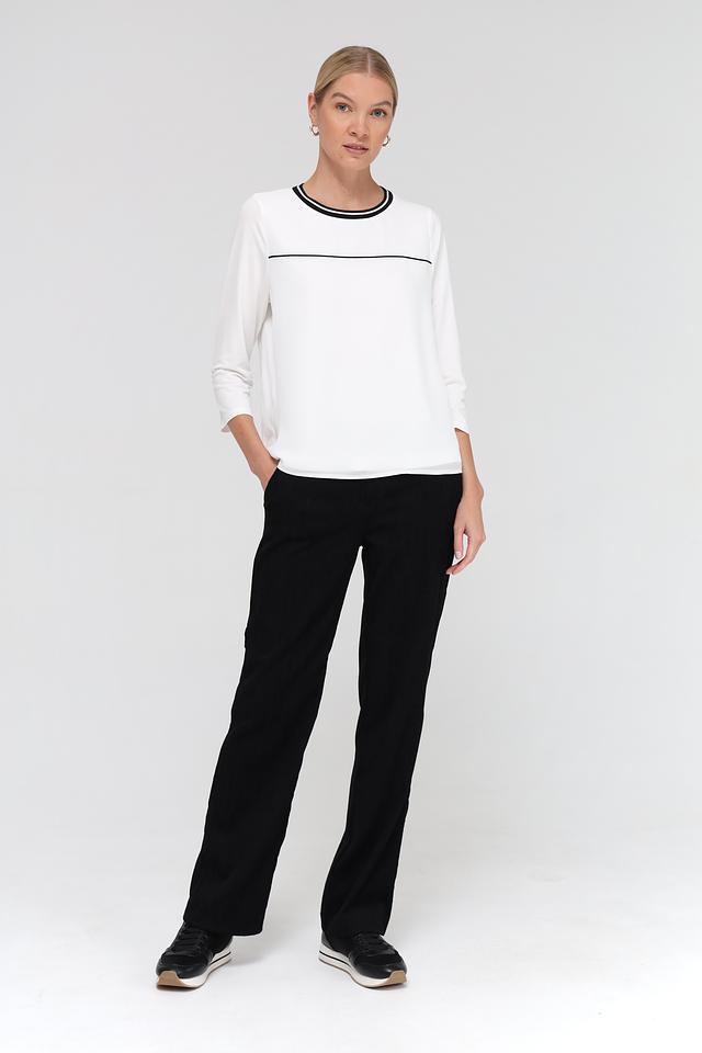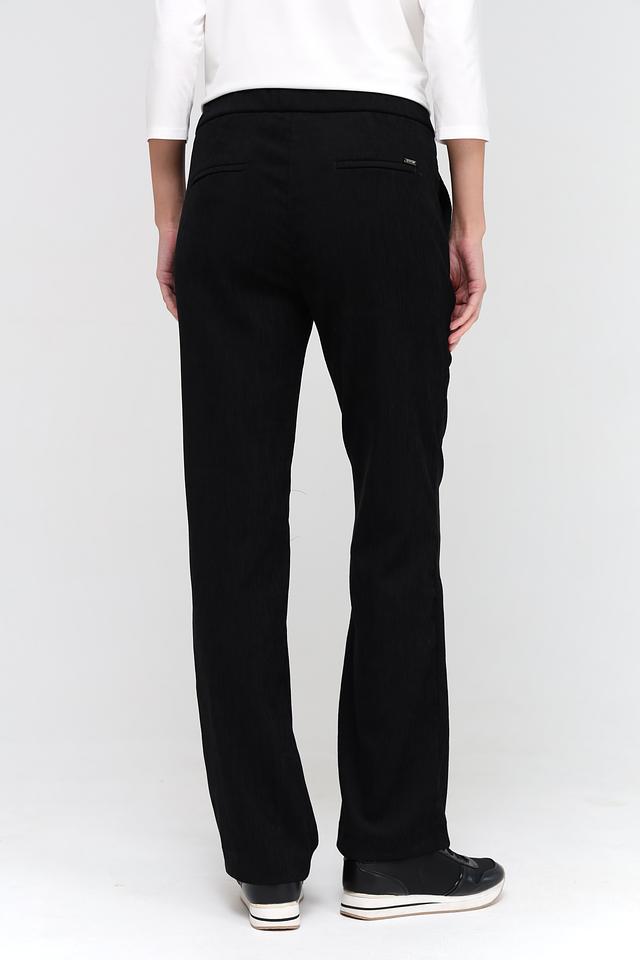Брюки имеют прямой крой и стандартную посадку по фигуре. Эластичный пояс обеспечивает удобную и надежную фиксацию. Ткань, состоящая из 97% полиэстера и 3% эластана, приятна на ощупь, хорошо держит форму и практически не мнется.