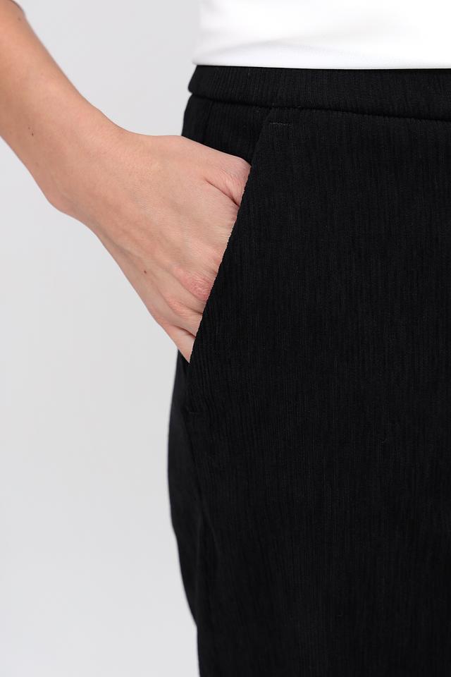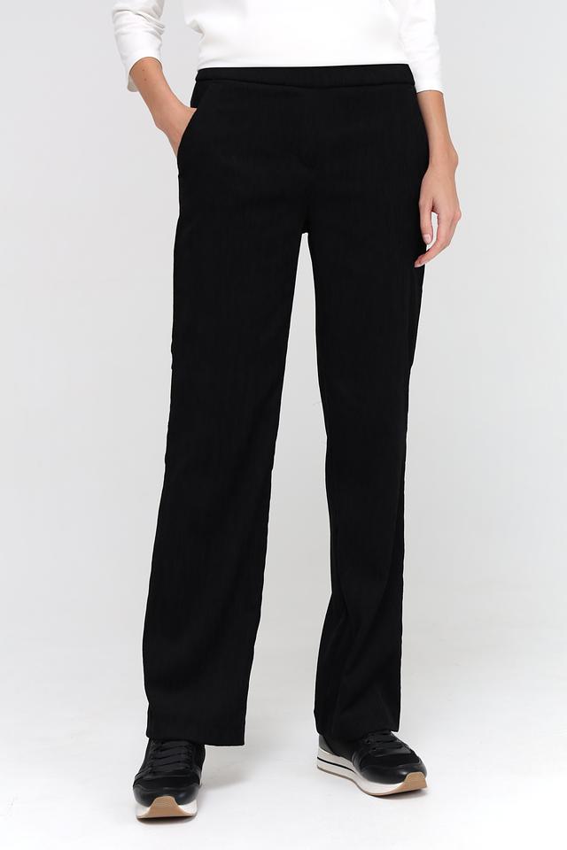 Брюки оснащены боковыми карманами, что делает их практичными для повседневной носки. Они идеально подойдут для создания различных образов — от деловых до casual. Универсальный чёрный цвет позволяет легко комбинировать их с различными видами верха и обуви.