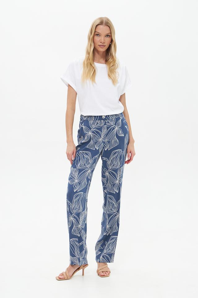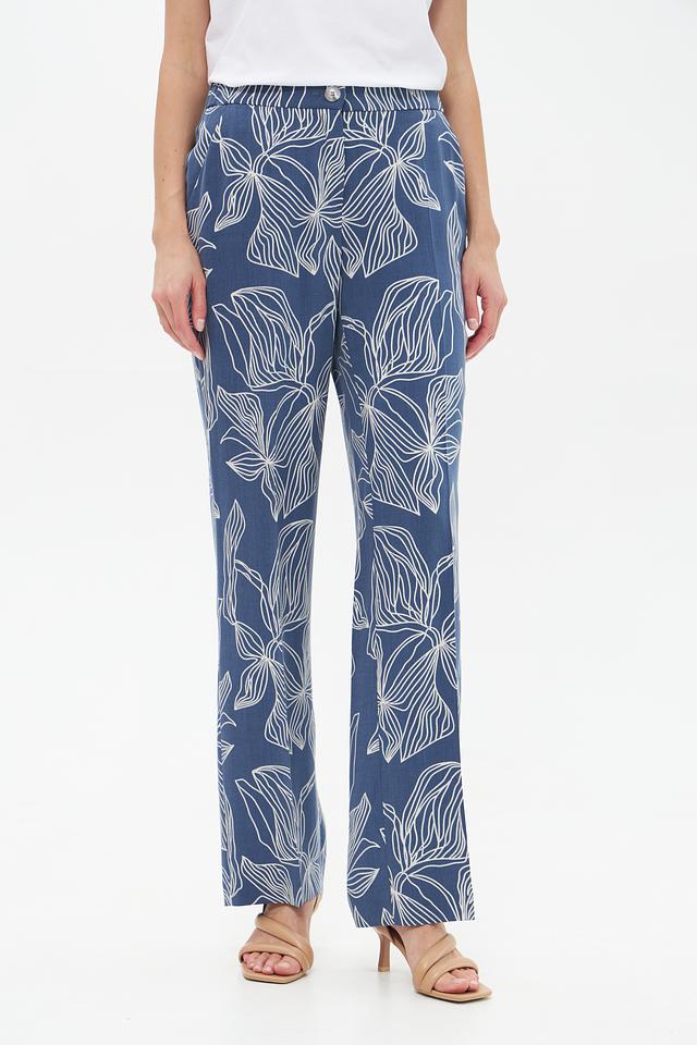 Женские брюки Toni collection синего цвета с оригинальным цветочным принтом. Изготовлены из 100% луоселла, обеспечивающего комфорт и лёгкость в носке. Идеальный выбор для создания стильного и непринуждённого образа. Состав: луоселл 100%