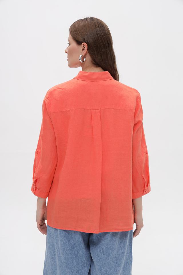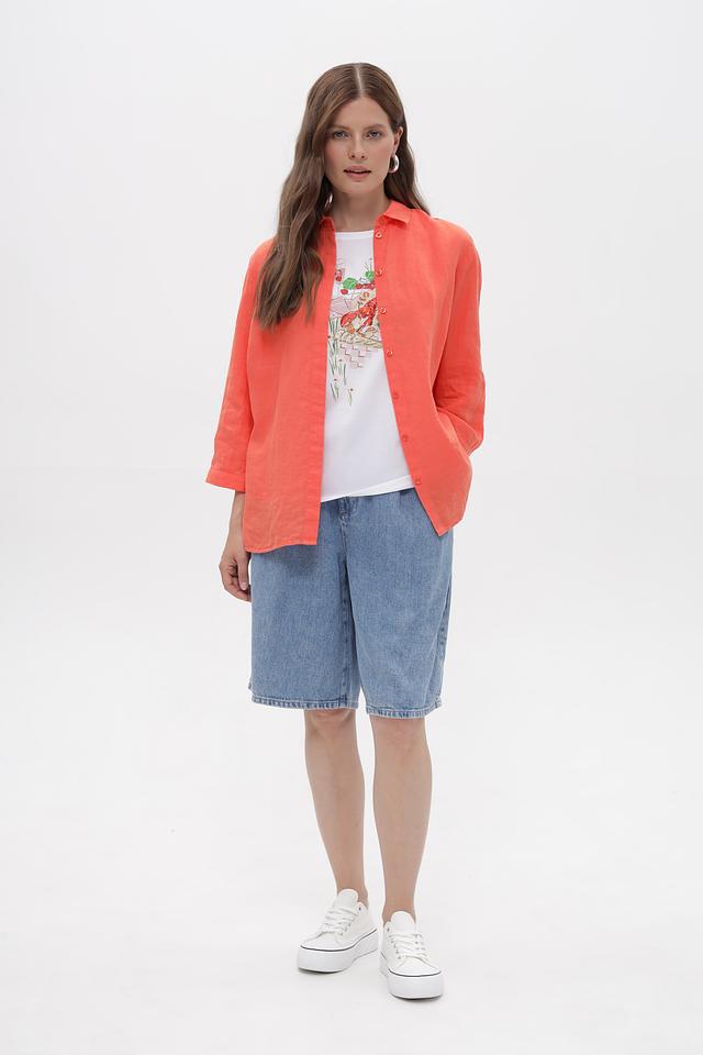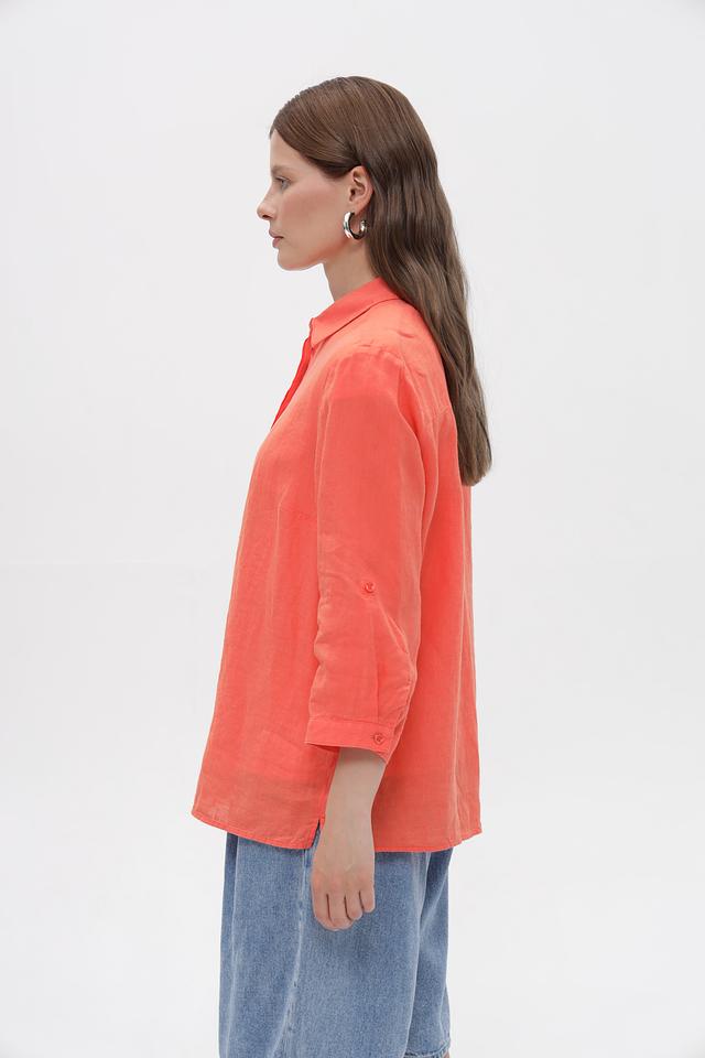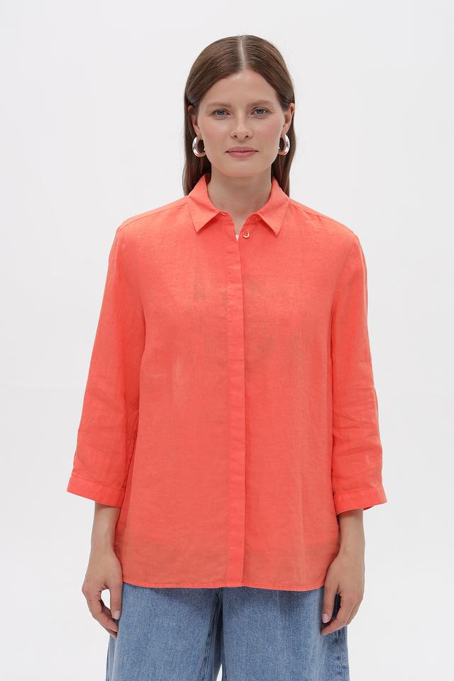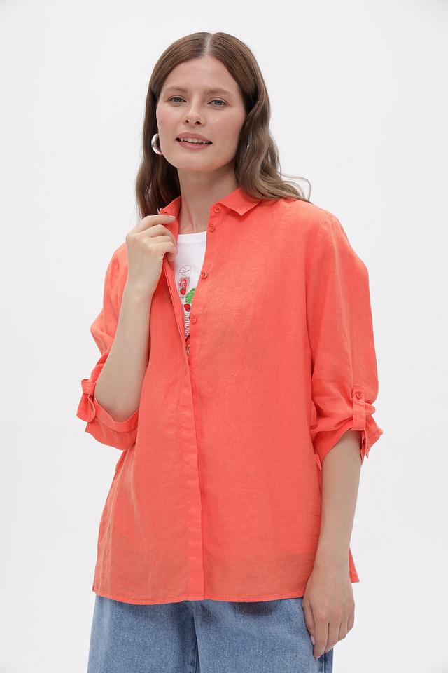 Коралловая блузка Toni collection из 100% льна – это комфорт и стиль в одном изделии. Классический крой с ¾ рукавами и застежкой на пуговицы делает ее универсальным элементом гардероба. Состав: лен 100%
