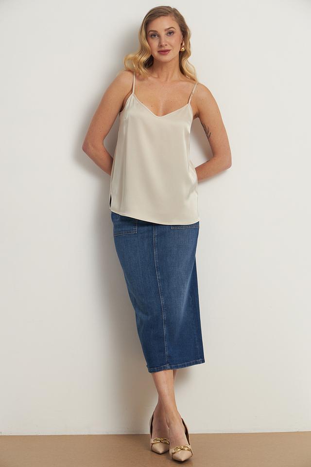 Тонкие бретели и V-образный вырез подчеркивают линию декольте, создавая женственный и утонченный образ. Свободный крой обеспечивает комфортную посадку по фигуре, а лёгкая ткань позволяет коже дышать.