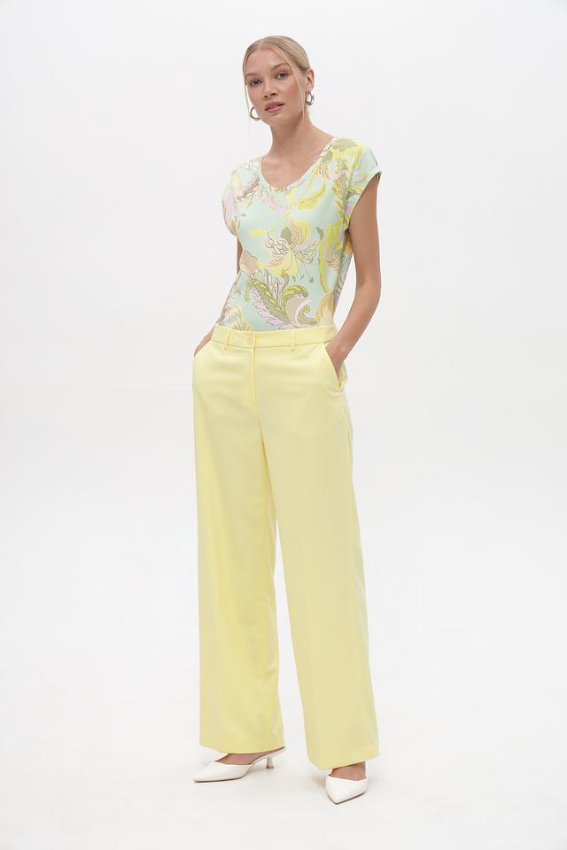 Изящный топ от Marc Cain, выполненный в нежном мятном цвете с эффектным цветочным принтом. Модель имеет прямой крой, который обеспечивает комфортную посадку по фигуре и не сковывает движения.