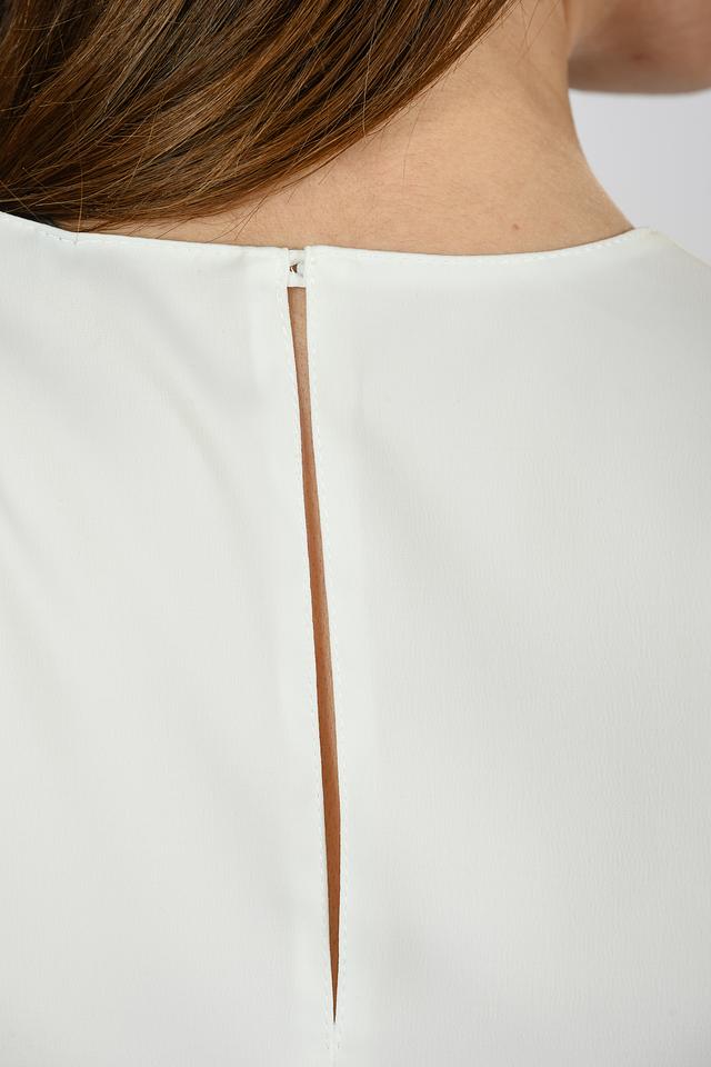 Спинка топа украшена небольшим разрезом, который добавляет пикантности. Ткань, из которой изготовлен топ, состоит из 80% полиэстера и 20% вискозы, что обеспечивает комфорт и удобство в носке.