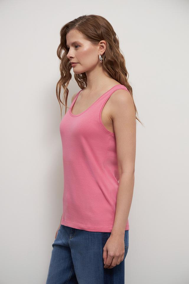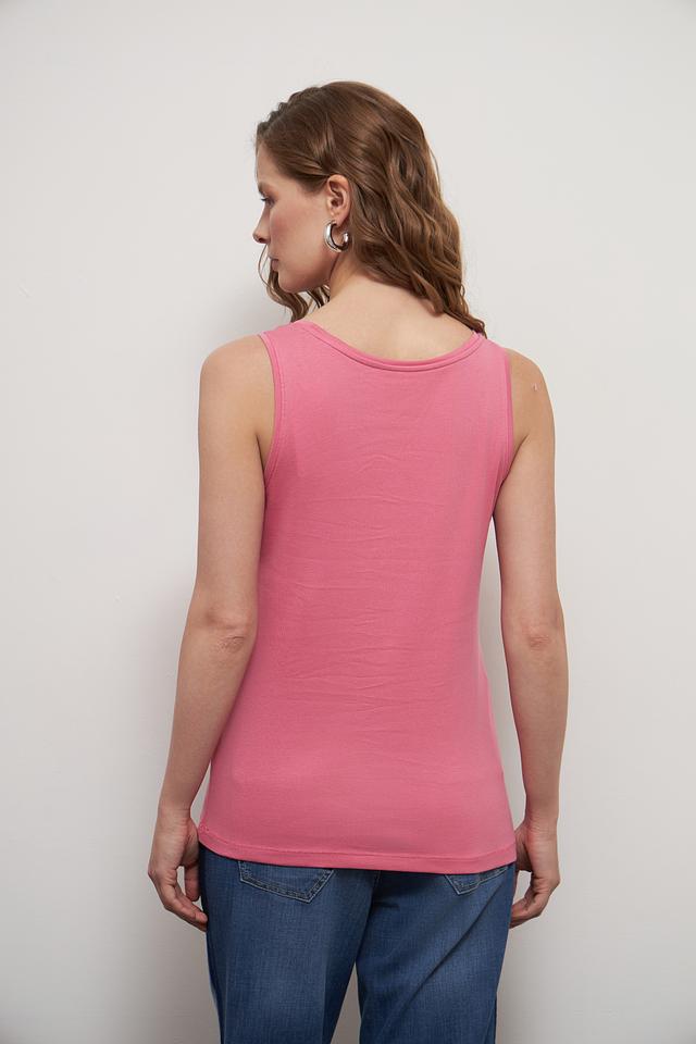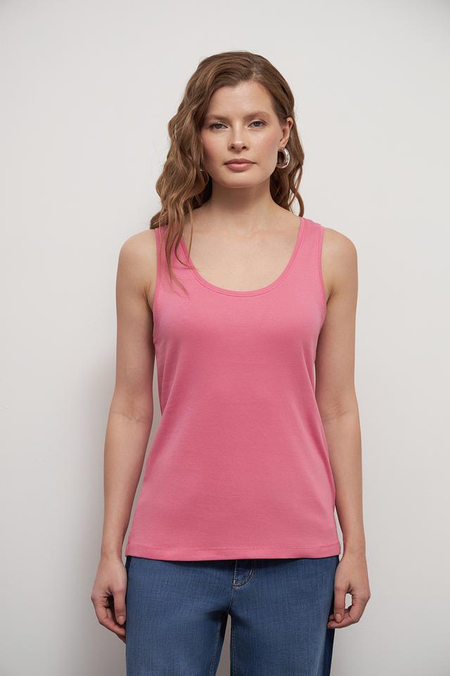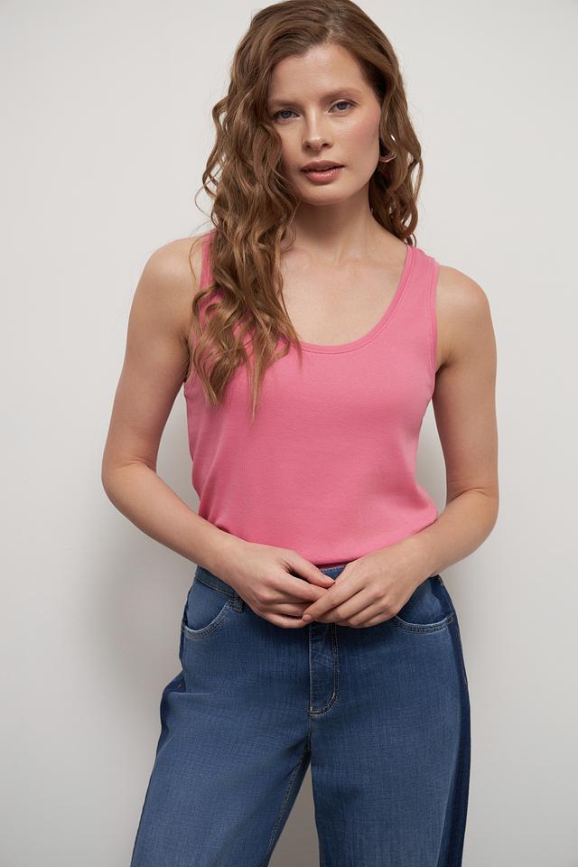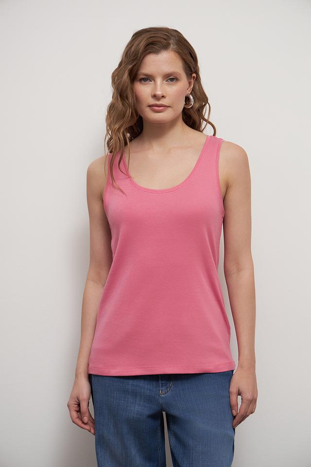 Топ имеет классический крой с тонкими бретелями и округлым вырезом горловины. Его можно носить как самостоятельный элемент одежды, так и в качестве основы для многослойных образов. Розовый цвет топа легко сочетается с различными элементами гардероба, позволяя создавать разнообразные стильные комплекты.