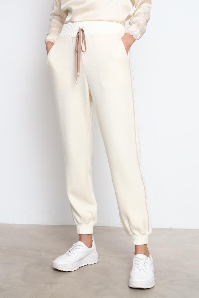 Женские брюки Tricot Chic кремового цвета — удобная и стильная модель с декоративной отделкой по боковой части. Изготовлены из мягкой ткани с добавлением вискозы и кашемира для максимального комфорта. Состав: вискоза 41%, полиэстер 29%, нейлон 15%, полиамид 8%, шерсть 5%, кашемир 2%