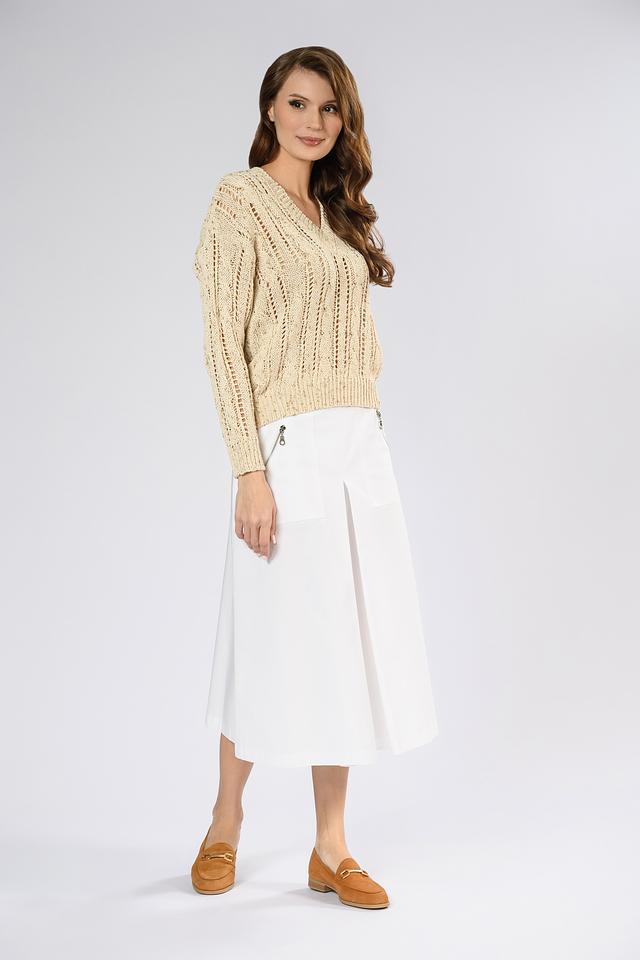 Джемпер идеально сочетается с юбками, брюками и джинсами, позволяя создавать разнообразные образы для повседневной жизни и особых случаев.