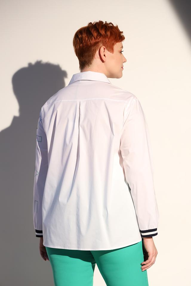 Рубашка имеет классический крой с длинными рукавами и отложным воротником. Манжеты рукавов дополнены черной полоской. Изготовлена из качественного хлопка с добавлением полиэстера и эластана, что обеспечивает приятные тактильные ощущения и хорошую посадку по фигуре.