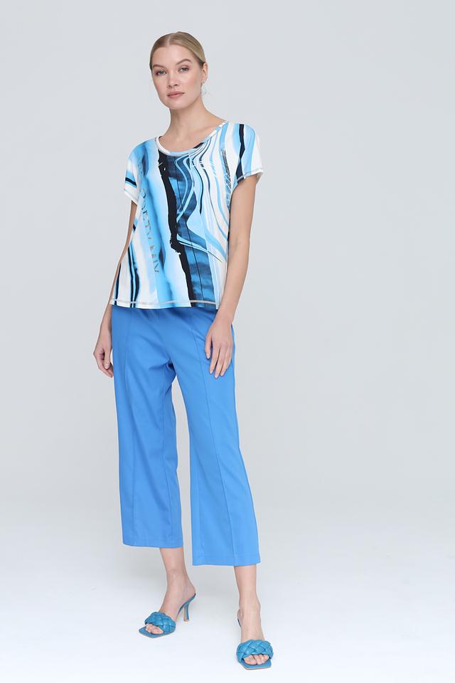 Представляем вашему вниманию стильные брюки кюлоты от бренда Tuzzi. Эта модель выполнена в актуальном голубом цвете, который легко сочетается с различными элементами гардероба.