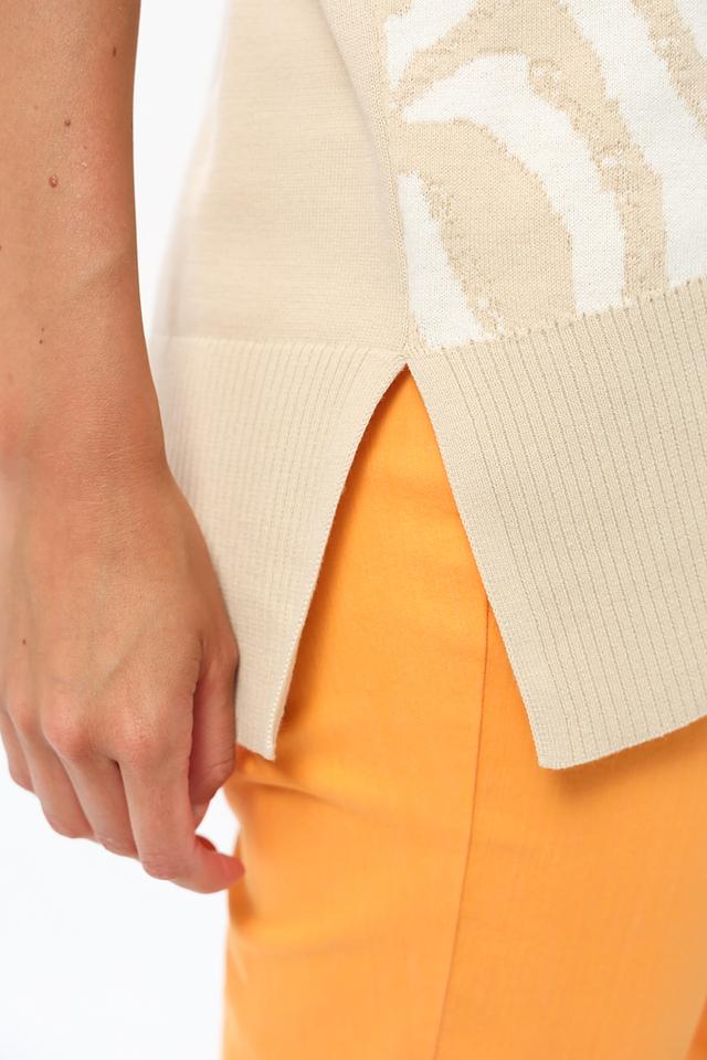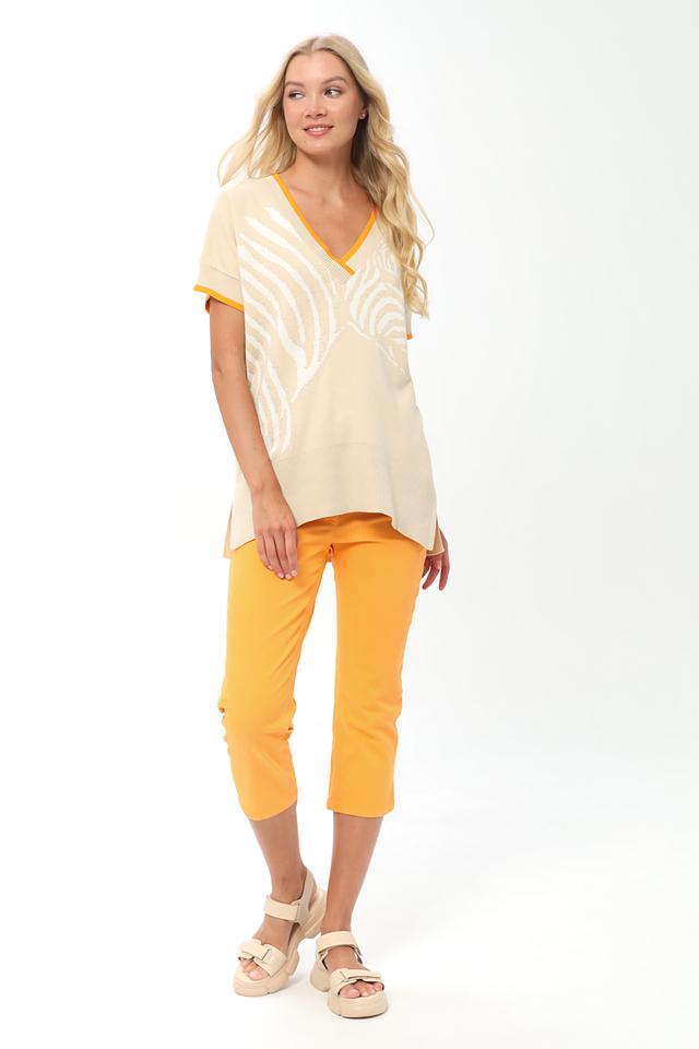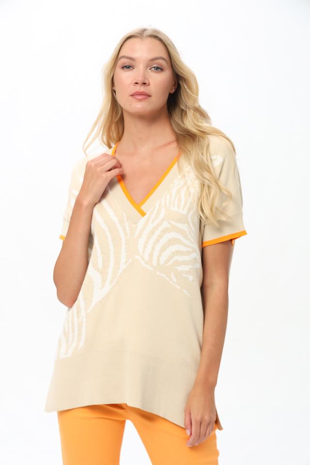 Бежевый пуловер Tuzzi с оригинальным принтом "зебра" станет стильным дополнением к вашему гардеробу. Модель с V-образным вырезом и короткими рукавами выполнена из мягкого хлопка. Состав: хлопок 100%
