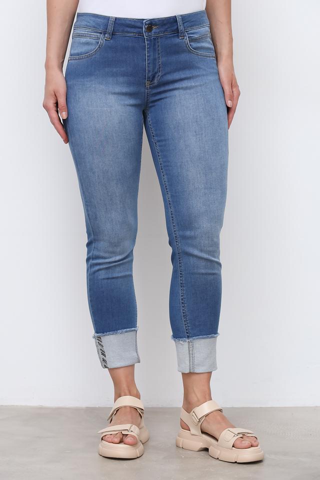 Особый акцент в дизайне – декоративная отделка на манжетах, выполненная в виде небольших страз, что добавляет джинсам изысканности и оригинальности. Данная модель идеально подойдет для создания повседневных образов.