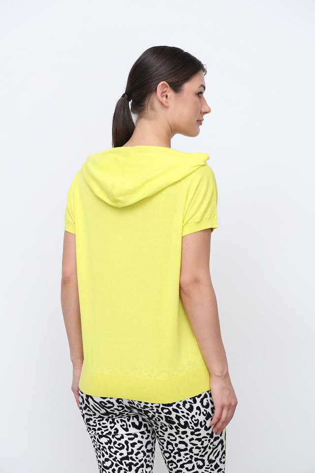 Женская футболка Tuzzi лаймового цвета с короткими рукавами и капюшоном, украшена вставкой с леопардовым принтом. Изготовлена из мягкого хлопка для комфорта в повседневной носке. Состав: хлопок 100%