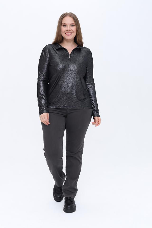 Блуза имеет эффектную отделку из пайеток, которые придают ей праздничный вид. Застежка-молния на горловине позволяет регулировать глубину выреза. Длинные рукава делают ее подходящей для прохладной погоды.