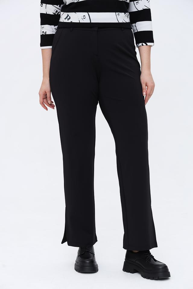 Брюки имеют прямой крой, который визуально вытягивает силуэт и обеспечивает комфортную посадку. Оригинальный дизайн дополняют разрезы по бокам, придающие образу динамичность и лёгкость.