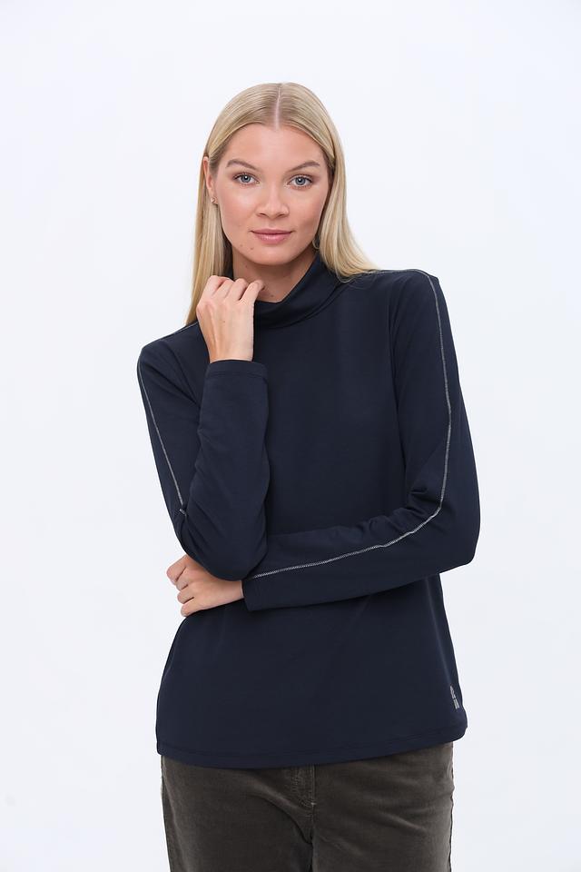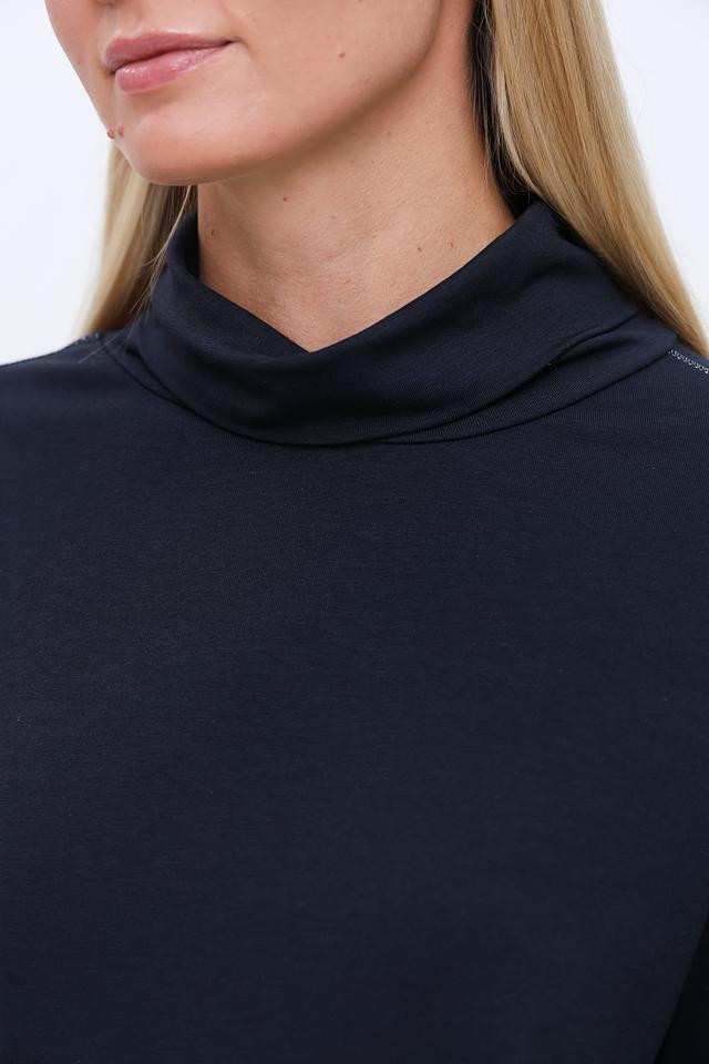 Водолазка Tuzzi темно-синего цвета – это стильная и комфортная база для вашего гардероба. Модель выполнена из мягкого трикотажа с добавлением хлопка и модала, а декоративная строчка на рукавах придает ей особый шарм. Состав: хлопок 45%, модал 45%, эластан 10%