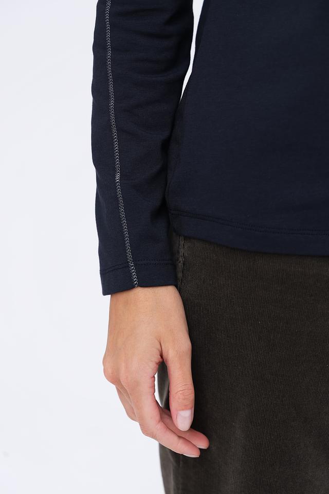 Водолазка имеет классический крой и длинные рукава. Особенностью модели является контрастная строчка вдоль рукавов, которая добавляет ей стильный акцент.