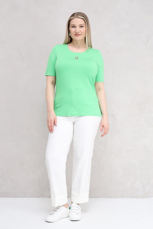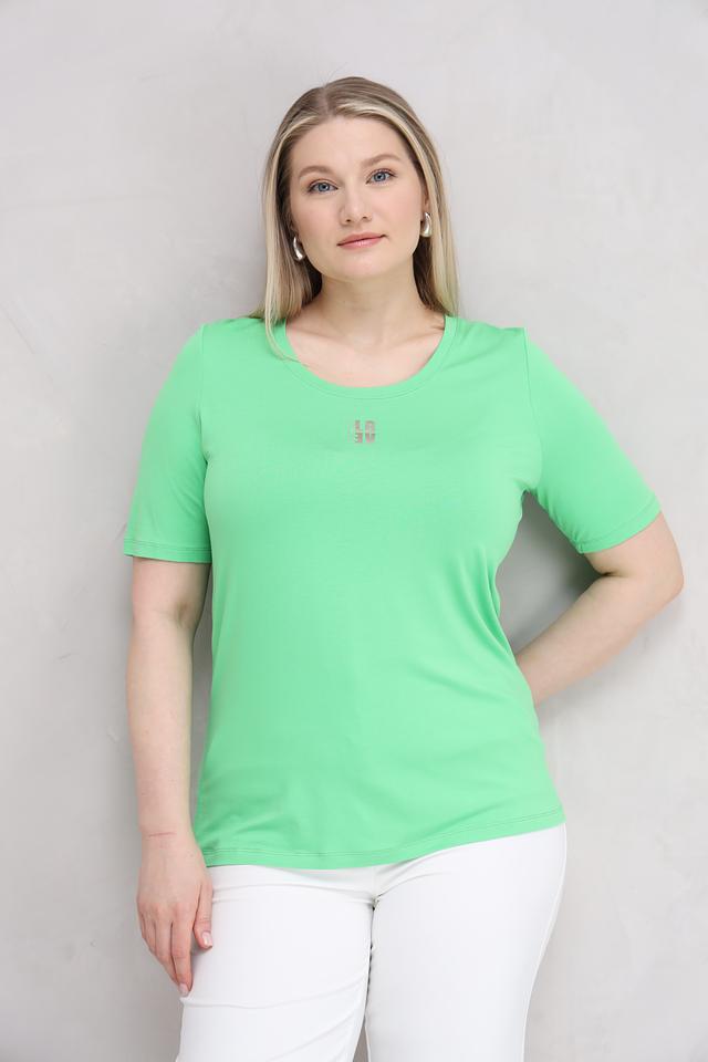 Женская футболка Tuzzi лаймового цвета с небольшим логотипом на груди. Изготовлена из мягкой вискозы с добавлением эластана для комфортной посадки и свободы движений. Состав: вискоза 95%, эластан 5%