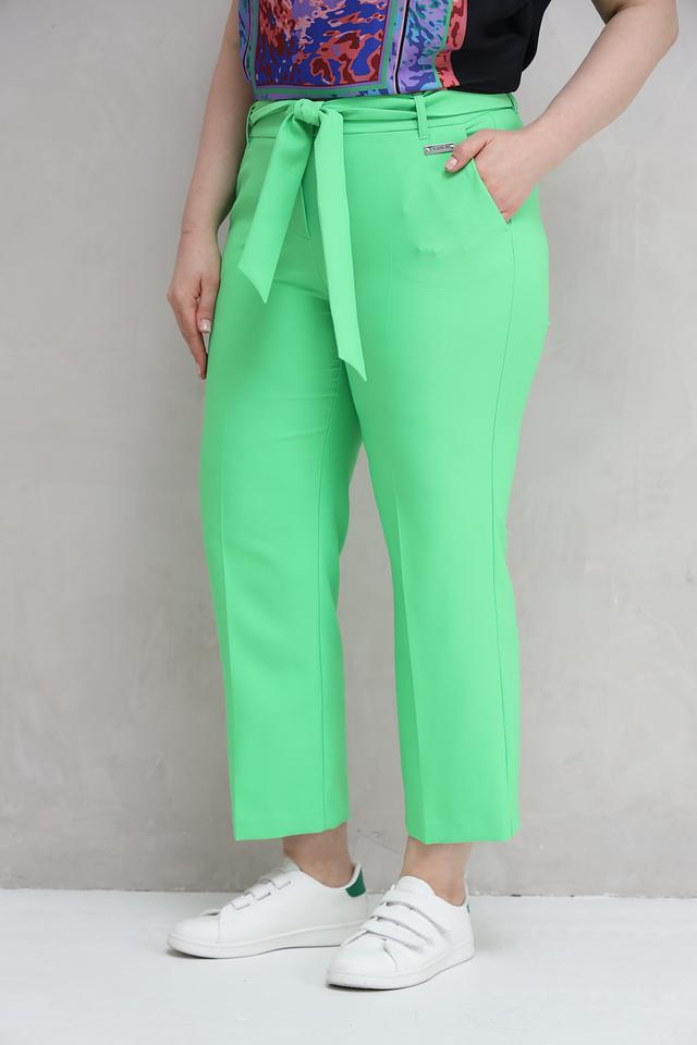 Женские брюки Tuzzi лаймового цвета — стильная модель с завышенной талией и декоративным поясом-завязкой. Брюки прямого кроя, с прорезными карманами и аккуратными складками спереди. Состав: полиэстер 84%, эластан 16%