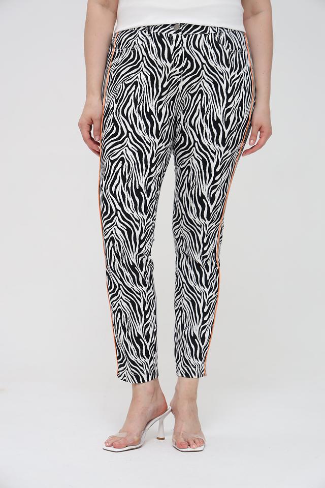 Оригинальный дизайн с принтом "зебра" и оранжевая декоративная полоса по бокам делают эти джинсы ярким акцентом в вашем гардеробе. Они идеально подойдут для создания модных и запоминающихся образов. Джинсы Tuzzi – это сочетание стиля, комфорта и качества.