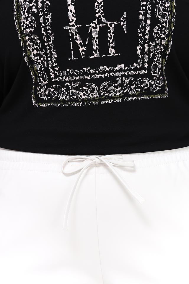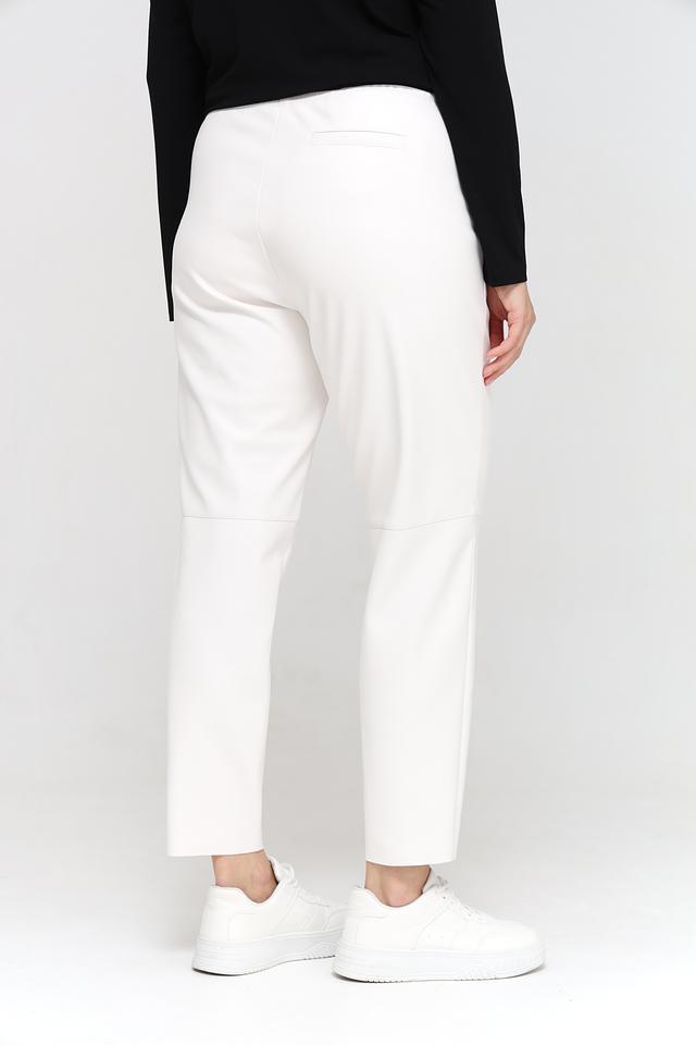Брюки выполнены в белом цвете, что делает их универсальными и легко сочетаемыми с различными элементами одежды. Крой кюлотов обеспечивает свободу движений и комфорт в носке. Материал – сочетание полиэстера и полиуретана – приятен на ощупь и хорошо держит форму.