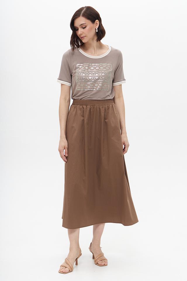 Эта футболка идеально подойдет для создания повседневных образов. Ее можно сочетать с юбками, брюками или джинсами, а также использовать как самостоятельный элемент гардероба в теплые летние дни.