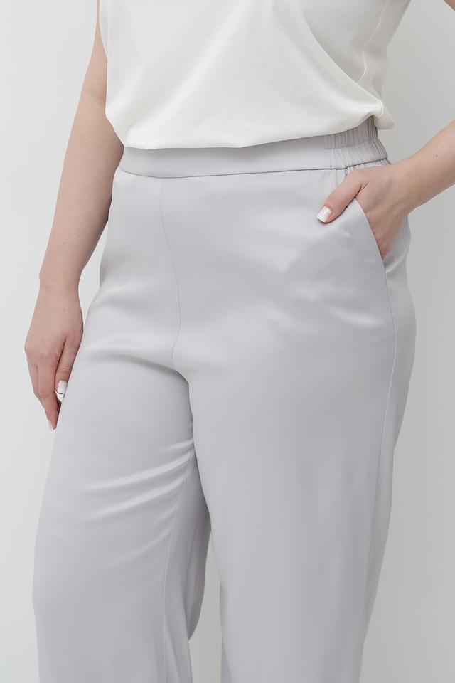 Брюки имеют прямой крой, который визуально вытягивает силуэт и обеспечивает комфортную посадку. Эластичный пояс гарантирует удобство в носке, а состав из 95% вискозы и 5% эластана обеспечивает мягкость и приятные тактильные ощущения.