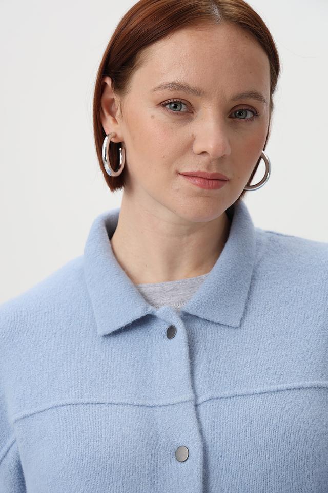 Голубой жакет Tuzzi из мягкой пряжи. Модель выполнена с застежкой на пуговицы и накладными карманами. Состав: шерсть, полиакрил, полиамид, полиэстер, эластан. Состав: полиакрил 68%, полиэстер 12%, полиамид 11%, шерсть 6%, эластан 3%