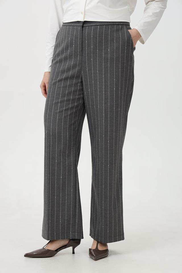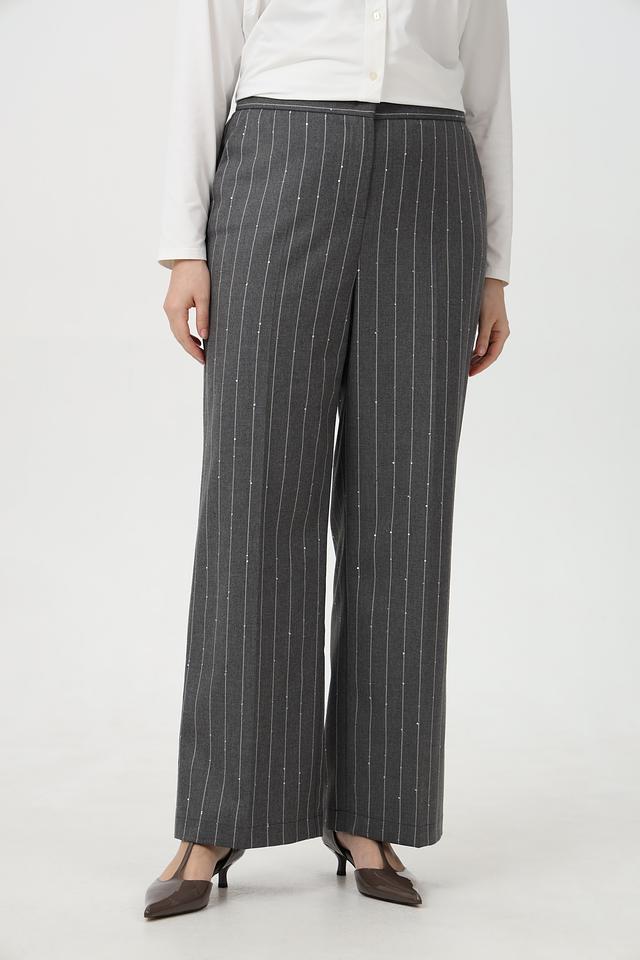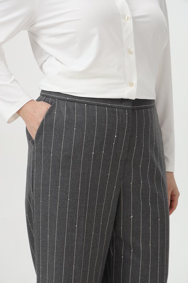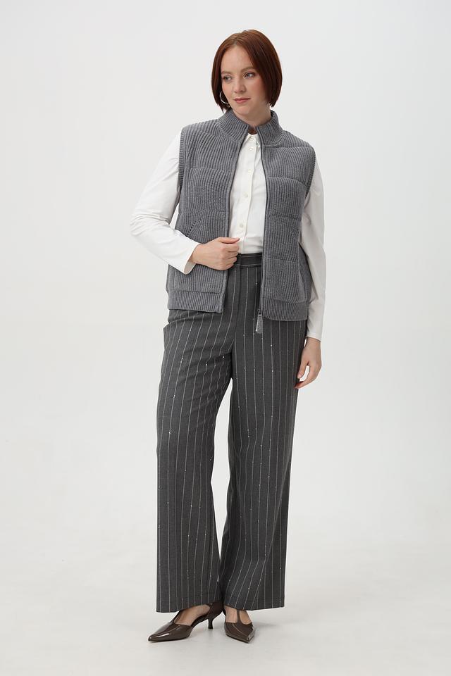 Представляем вашему вниманию стильные брюки от бренда Tuzzi. Эта модель выполнена в сером цвете с вертикальной полоской, что придает образу элегантность и изысканность.