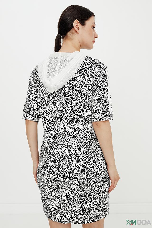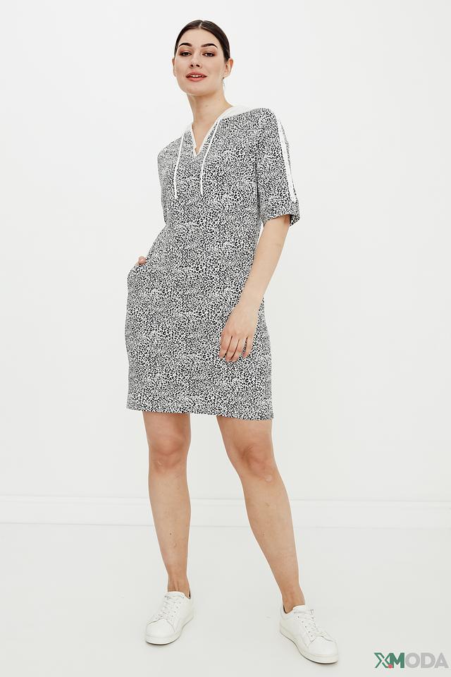 Платье от Tuzzi с ярким леопардовым принтом и удобным капюшоном станет отличным выбором для повседневного образа. Модель выполнена из мягкого хлопка с добавлением полиэстера и эластана, обеспечивающих комфорт и свободу движений. Состав: хлопок 73%, полиэстер 24%, эластан 3%