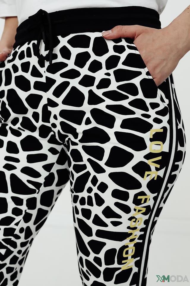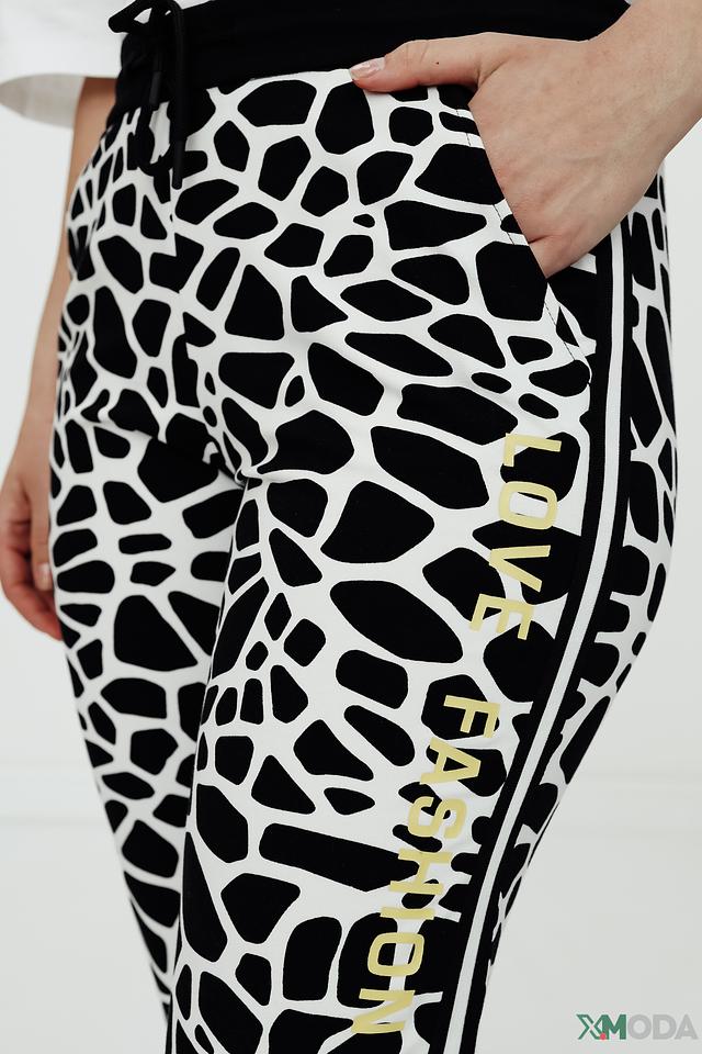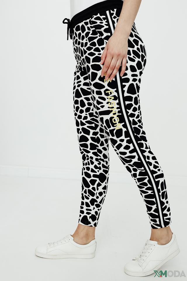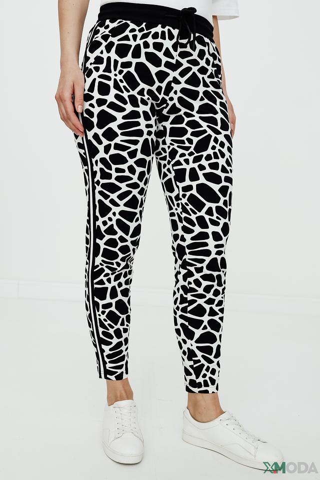 Женские брюки Tuzzi чёрно-белого цвета с оригинальным принтом "леопард" станут ярким акцентом в вашем гардеробе. Модель выполнена из мягкого хлопка с добавлением эластана для комфортной посадки и свободы движений. Состав: хлопок 94%, эластан 6%