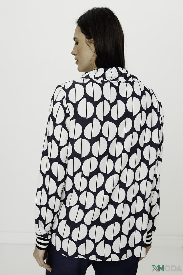 Эта блуза от Tuzzi станет отличным дополнением к вашему гардеробу. Она выполнена в синем цвете с ярким геометрическим принтом в виде белых горошин. Модель имеет свободный крой, что обеспечивает комфорт в носке.