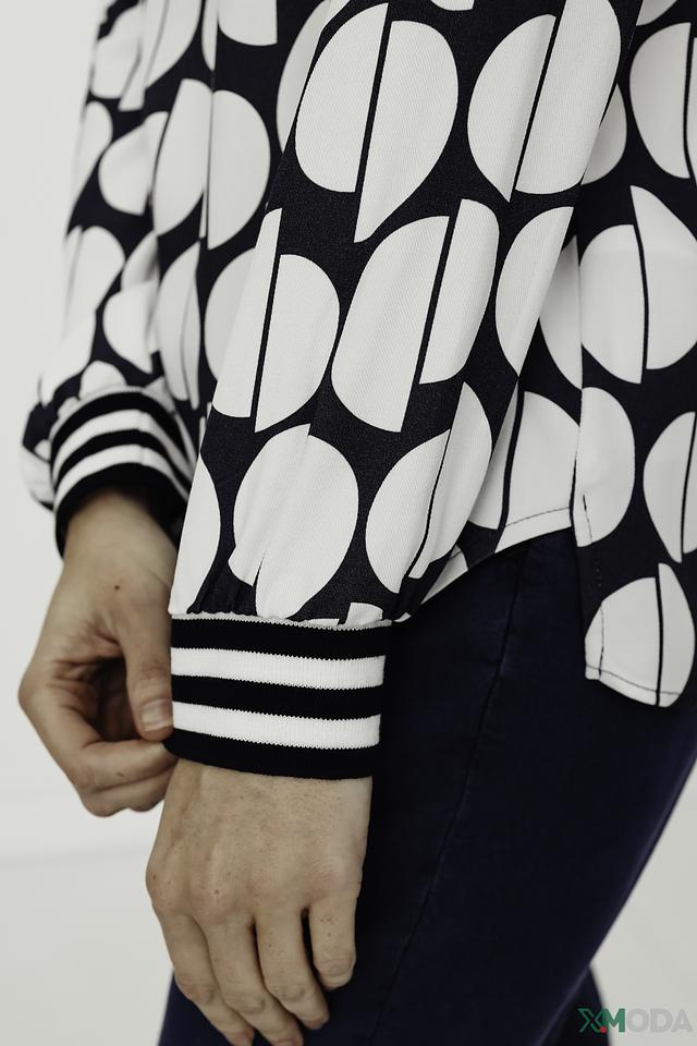 Блуза оснащена капюшоном, который добавляет образу непринужденности и защищает от ветра. Длинные рукава заканчиваются манжетами на резинке, обеспечивая удобную посадку по запястью. Изготовлена из 100% вискозы, что делает ее приятной к телу и легкой в уходе.