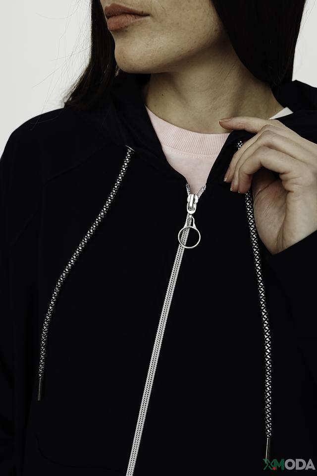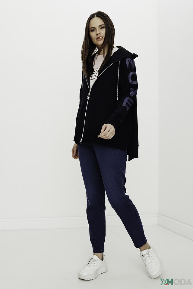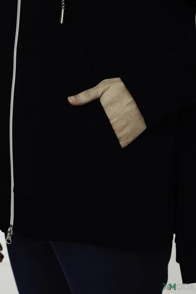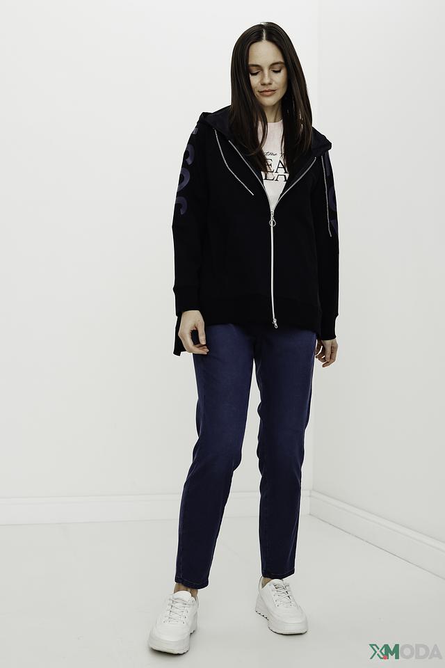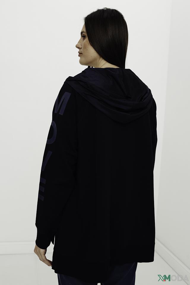 Кардиган имеет удобный капюшон и застёжку на молнии, что позволяет регулировать степень тепла. Оригинальная надпись на спине добавляет изделию индивидуальности и современности. Длинные рукава и свободный крой обеспечивают свободу движений.