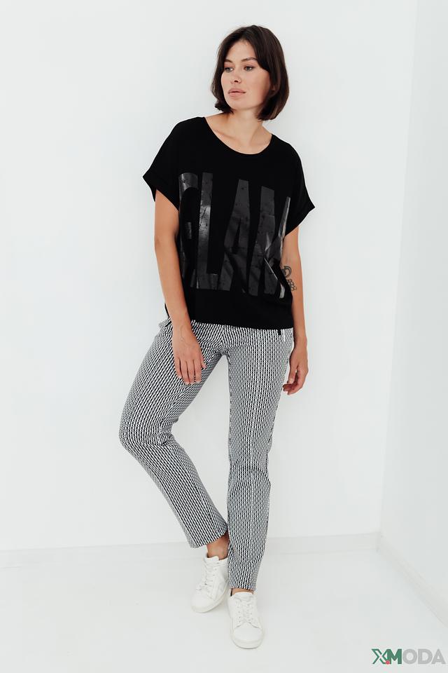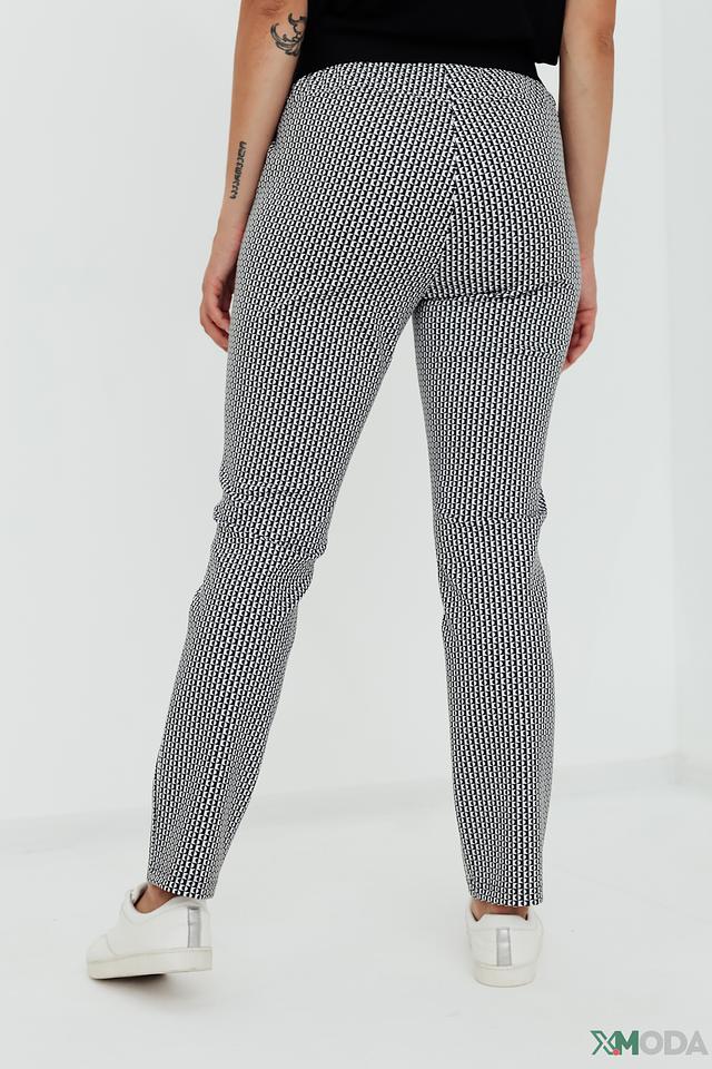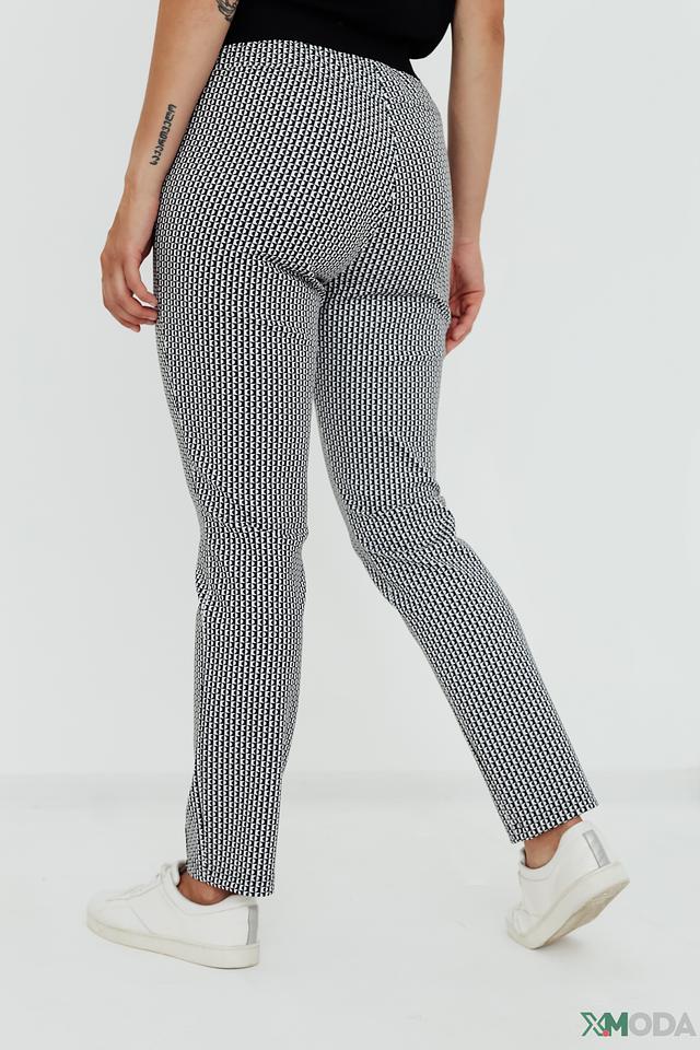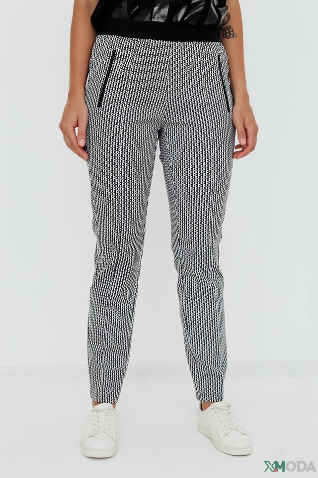 Женские брюки Tuzzi чёрно-белого цвета с вертикальным рисунком в полоску. Модель выполнена из эластичного полиэстера с добавлением эластана, обеспечивающего комфортную посадку и свободу движений. Состав: полиэстер 92%, эластан 8%