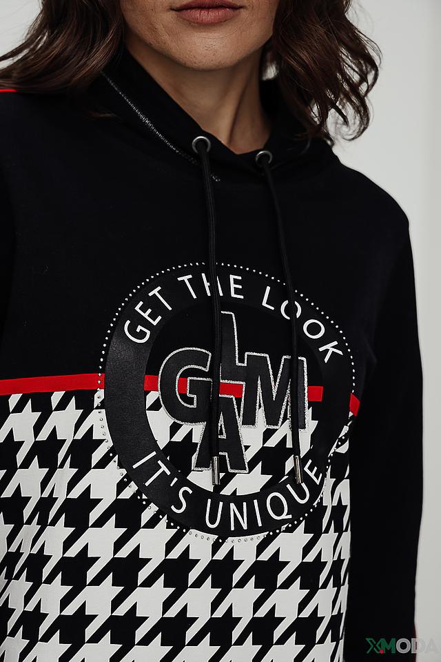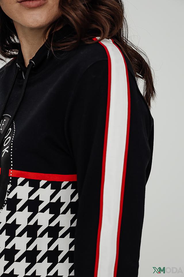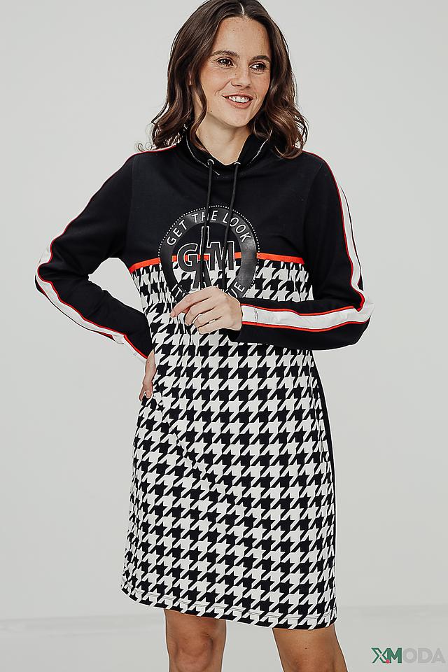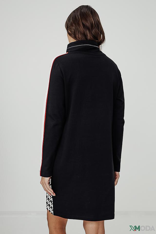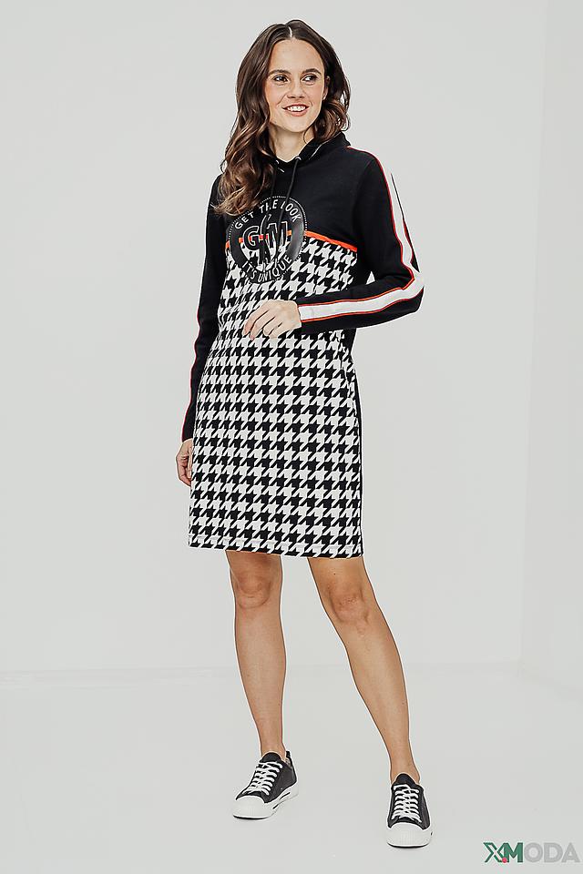 Платье от Tuzzi черного цвета с оригинальным дизайном, сочетающим клетку и спортивный стиль. Модель с капюшоном и ярким принтом добавит изюминку вашему образу. Состав: хлопок 97%, эластан 3%