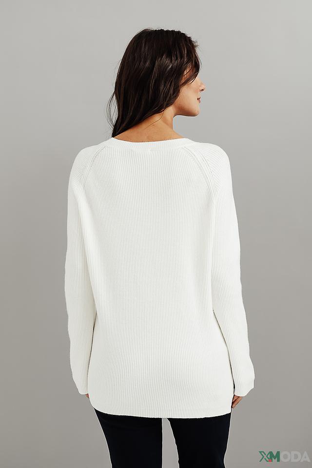 Пуловер изготовлен из высококачественного трикотажа, в составе которого 52% вискозы, 28% полиэстера и 20% полиамида. Такое сочетание материалов обеспечивает мягкость, комфорт и долговечность изделия. Текстура вязки приятна к телу и не сковывает движений.