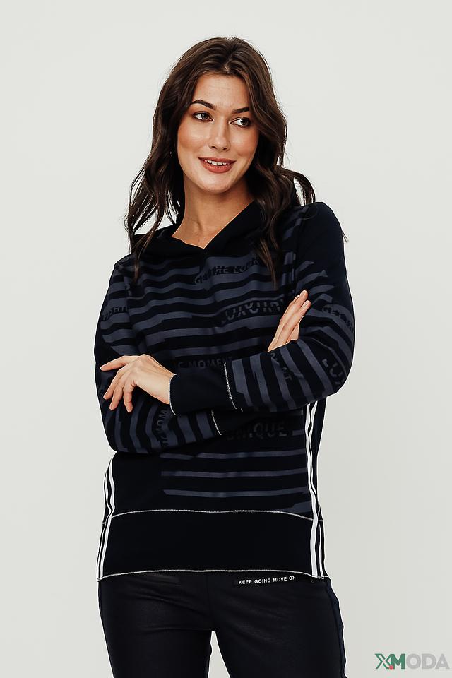 Чёрная толстовка от Tuzzi с оригинальным принтом и капюшоном. Изготовлена из мягкого хлопка с добавлением полиэстера и эластана для комфорта и сохранения формы. Стильный и удобный выбор для повседневной носки. Состав: хлопок 75%, полиэстер 20%, эластан 5%