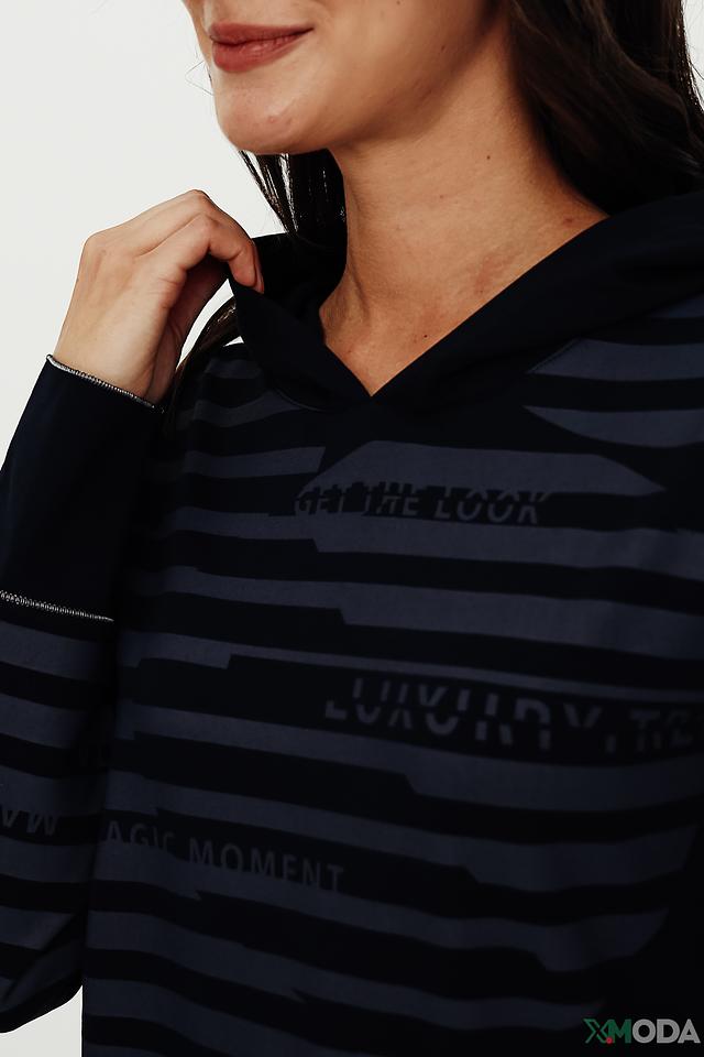 Модель имеет удобный капюшон и свободный крой, обеспечивающий комфорт при носке. Рукава и нижний край дополнены манжетами. Сочетание хлопка, полиэстера и эластана обеспечивает мягкость, износостойкость и хорошую посадку по фигуре.