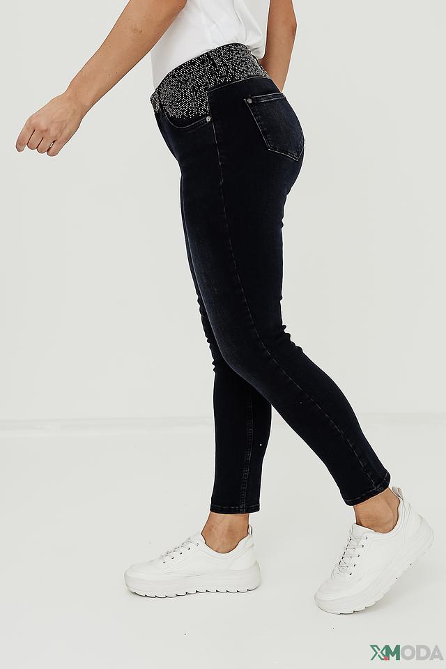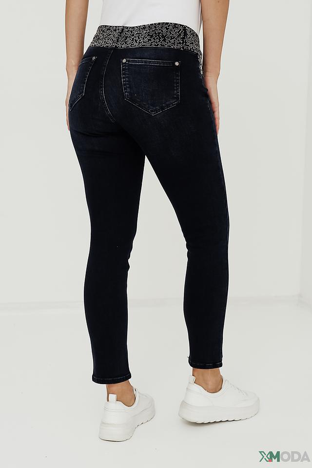 Джинсы имеют удобный крой, который подчеркивает достоинства фигуры, не сковывая движений. Пояс украшен мерцающими кристаллами, добавляющими образу изысканности и блеска. Состав ткани включает 98% хлопка и 2% эластана, что обеспечивает комфорт в носке и хорошую посадку.