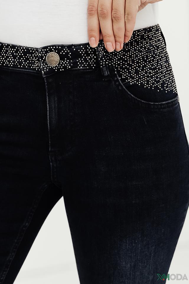 Чёрные джинсы Tuzzi с декором из кристаллов на поясе — стильное и комфортное решение для повседневного образа. Модель выполнена из плотного хлопка с добавлением эластана, обеспечивающего идеальную посадку по фигуре. Состав: хлопок 98%, эластан 2%