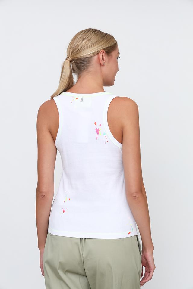 Этот топ от Twin Set станет отличным дополнением к вашему гардеробу. Выполненный в белом цвете, он украшен яркими брызгами, которые придают ему индивидуальность и свежий вид.