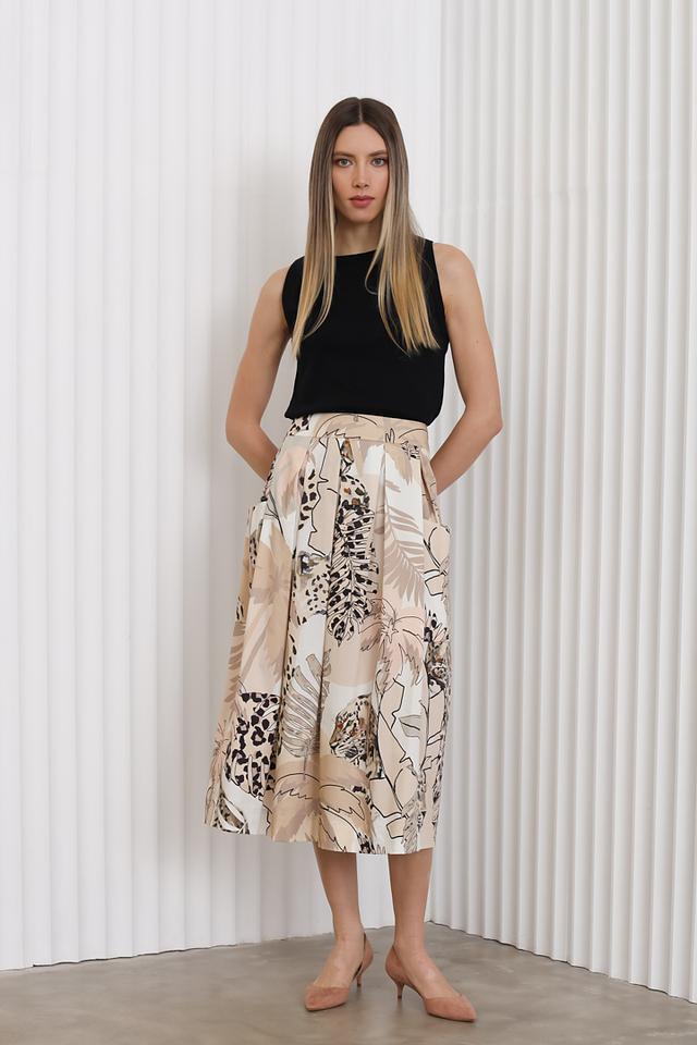Топ имеет классический крой без рукавов и круглый вырез горловины, что делает его универсальным для сочетания с различными элементами одежды. Его можно носить как самостоятельный предмет гардероба, так и в качестве основы для многослойных образов.