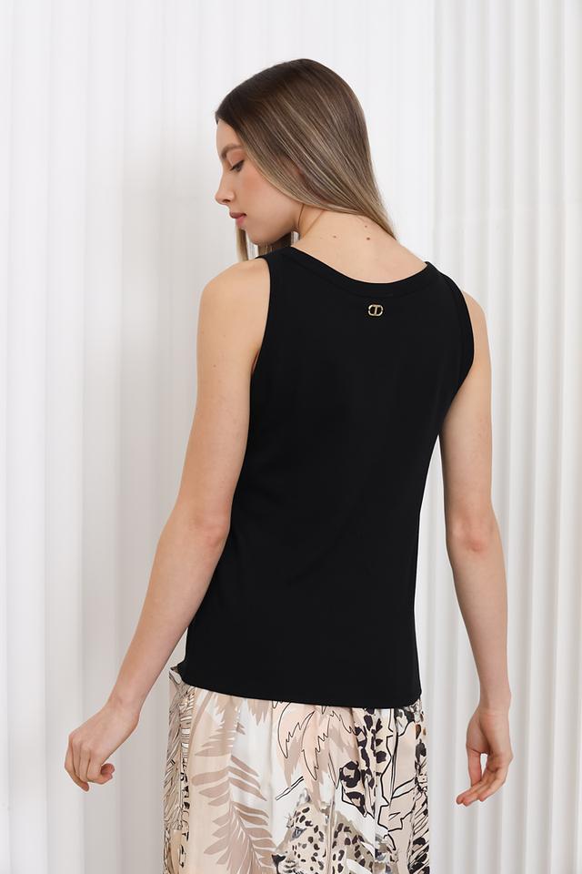 Чёрный топ Twin Set — это базовая модель без рукавов, выполненная из 100% хлопка. Лаконичный дизайн и удобный крой делают этот топ идеальным для создания повседневных образов. Состав: хлопок 100%