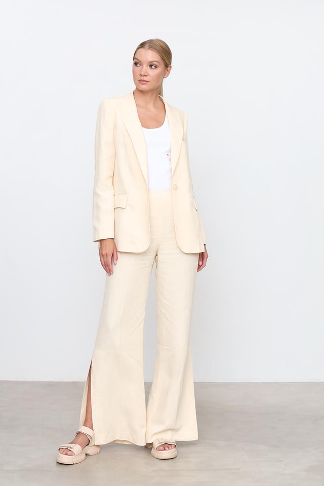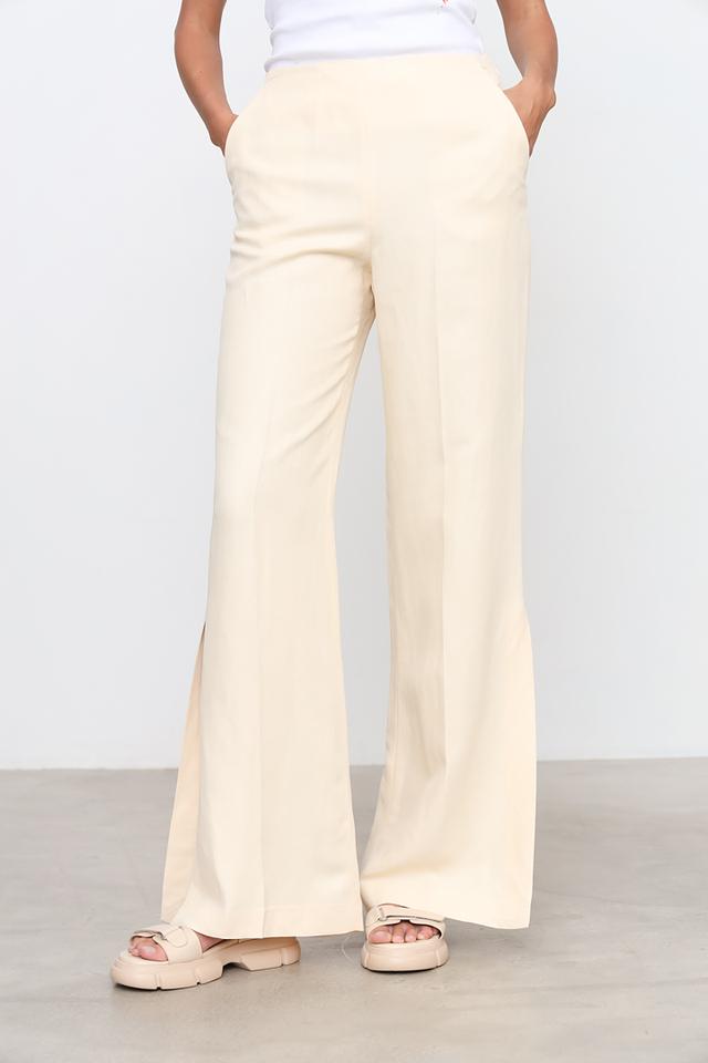 Изготовленные из сочетания вискозы (83%) и льна (17%), брюки приятны к телу, хорошо драпируются и обеспечивают комфорт в течение всего дня. Подкладка выполнена из ацетата (68%) и полиэстера (32%).