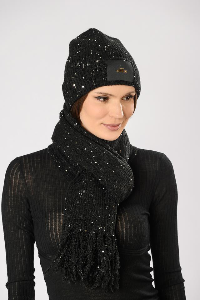 Шапка Twin Set Actitude чёрная с пайетками