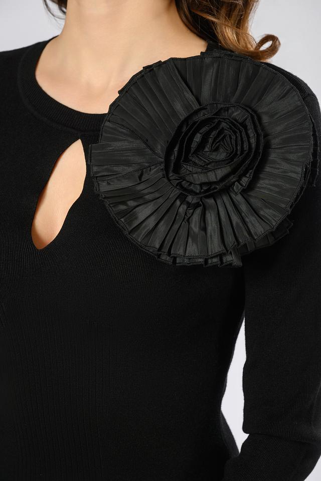Элегантное вечернее платье Twin Set Actitude чёрного цвета выполнено из трикотажа с вырезом и декоративным цветком. Приталенный силуэт подчеркнет фигуру, а длинный рукав добавит образу изысканности. Состав: вискоза 60%, полиэстер 23%, полиамид 17%