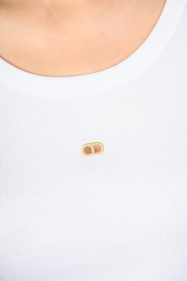 Белая блуза Twin Set — это стильный и лаконичный топ на тонких бретелях. Изготовлена из 100% хлопка, обеспечивающего комфорт и воздухопроницаемость. Декорирована небольшим логотипом бренда. Состав: хлопок 100%