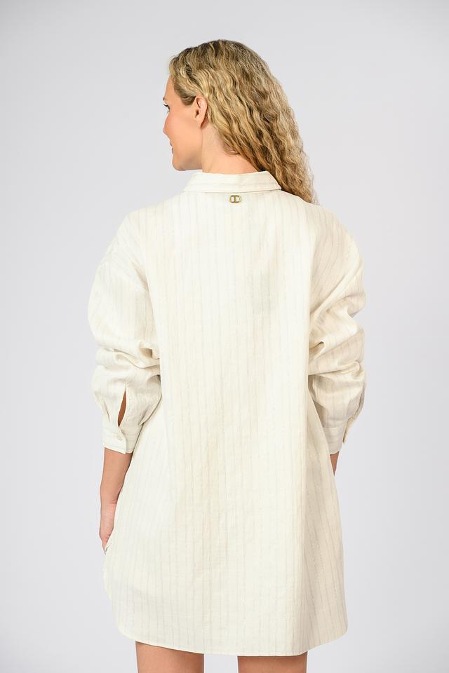 Бежевая блуза Twin Set в вертикальную полоску – стильное и лёгкое решение для создания повседневного образа. Модель выполнена из смесового состава с добавлением хлопка и льна, что обеспечивает комфорт и воздухопроницаемость. Состав: хлопок 39%, лен 37%, полиамид 11%, полиэстер 10%, вискоза 3%