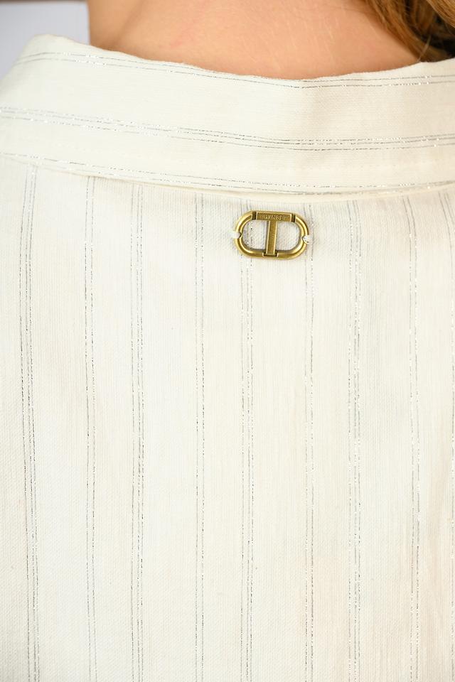 На левой стороне груди расположена декоративная металлическая планка с логотипом бренда Twin Set, добавляющая изысканности изделию.