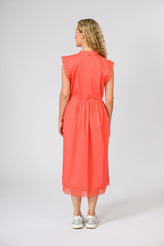 Коралловое платье от Twin Set — это стильное решение для теплого времени года. Модель выполнена из хлопка с добавлением эластана, имеет приталенный силуэт с завязкой на талии и декорирована изящным кружевом. Состав: хлопок 96%, эластан 4%